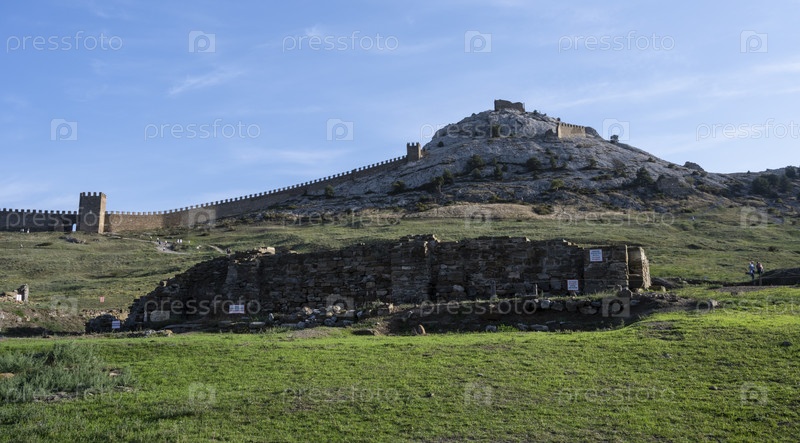 Генуэзская крепость в Судаке, Республика Крым, Россия. Вечером 4 октября 2020 г