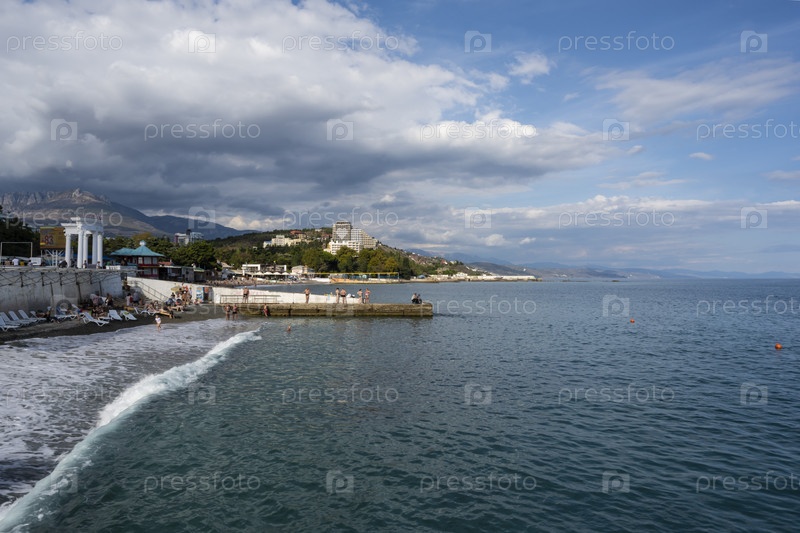 Набережная города Алушта, Республика Крым, Россия. Ясный солнечный день 3 октября 2020 г