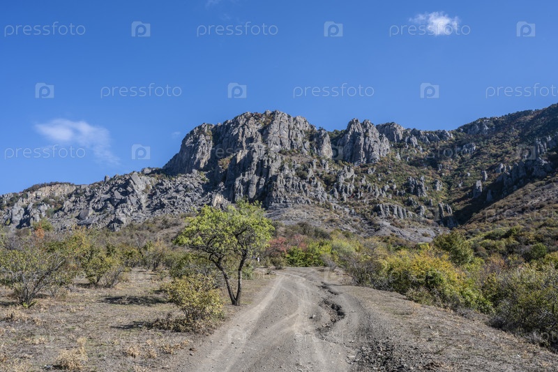 Гора Демерджи в Алуште, Республика Крым, Россия. Ясный солнечный день 3 октября 2020 г