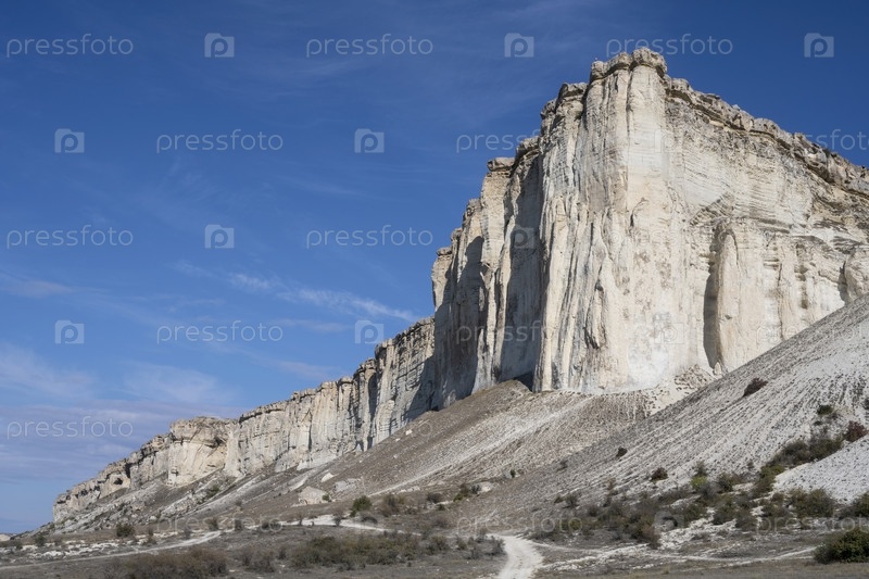 Белая скала в Республике Крым, Россия. Ясное, солнечное утро 2 октября 2020 г