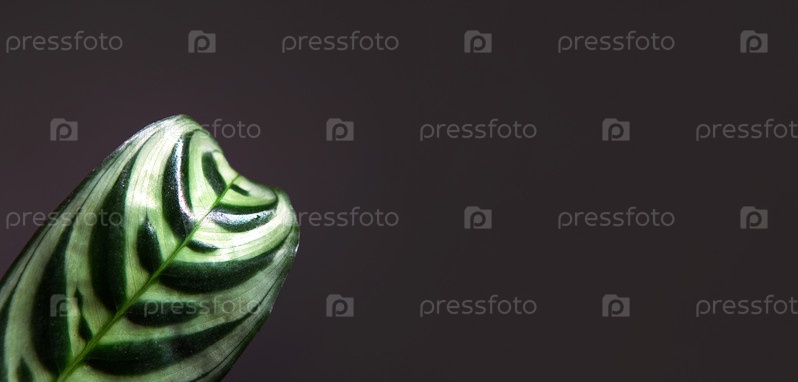 Лист Ctenanthe burle-marxii в крупном плане на подоконнике при ярком солнечном свете с тенями. горшечные комнатные растения, зеленый домашний декор, уход и выращивание, сорта маранча, калатая. Копировать пространство