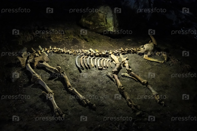 Скелет древнего животного в Мамонтовой пещере в Республике Крым, Россия. 2 октября 2020 г