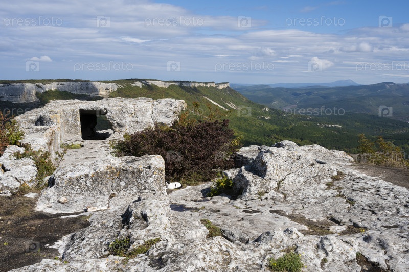 Пещерный город Мангуп-Кале в Республике Крым, Россия. Солнечный день 30 сентября 2020 г