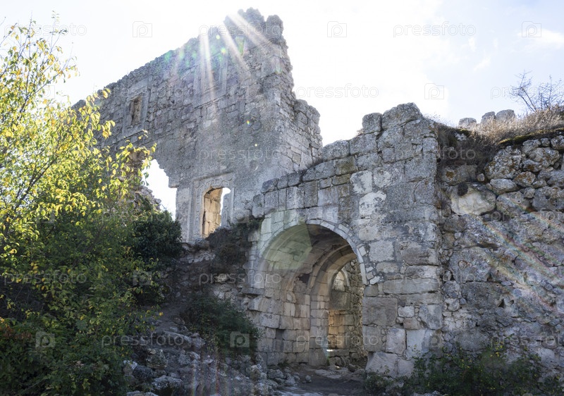 Пещерный город Мангуп-Кале в Республике Крым, Россия. Солнечный день 30 сентября 2020 г