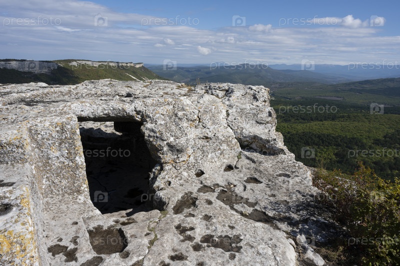 Пещерный город Мангуп-Кале в Республике Крым, Россия. Солнечный день 30 сентября 2020 г