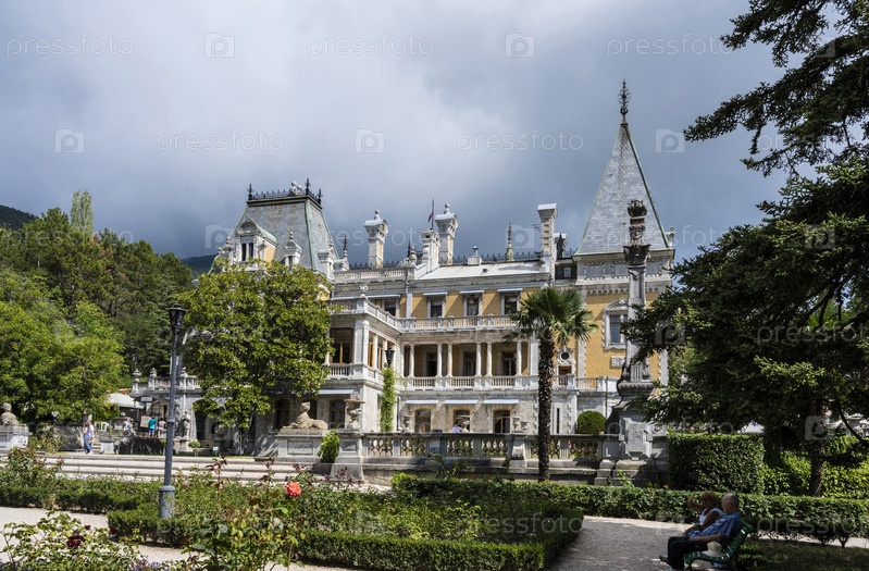 Массандровский дворец на солнце в пасмурный день. г. Ялта, Республика Крым, Россия. 8 сентября 2020 г