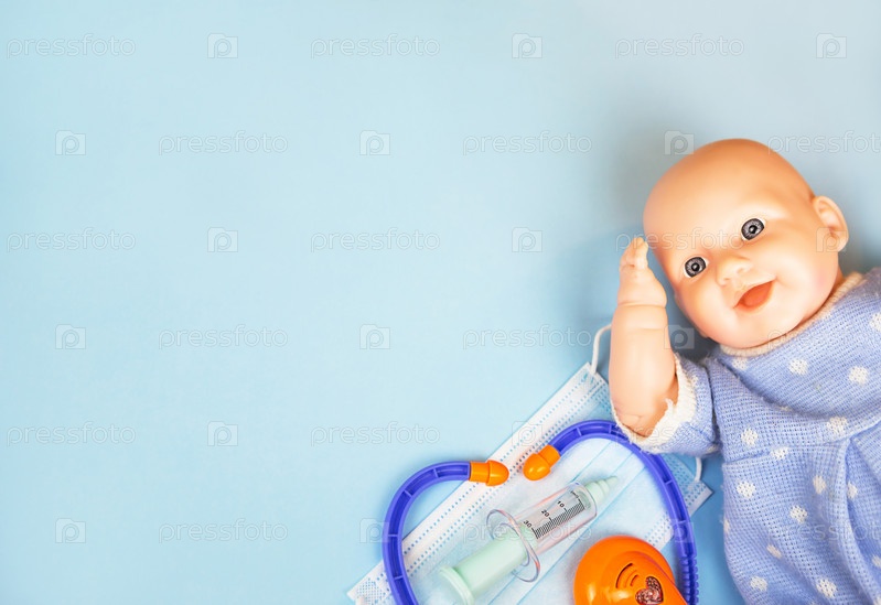Категорически на медицинскую тему из набора детского доктора - профессиональная больничная игра, прививки, прививки, осмотр у педиатра, защитная маска, стетоскоп. Копировать пространство