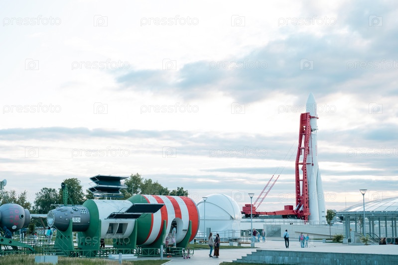 Калужский музей космонавтики - подготовка к открытию 2-й очереди. Ракета Восток, купол планетария, парк Циолковского перед зданием, реконструкция. 29 августа 2022 г., Калуга, Россия