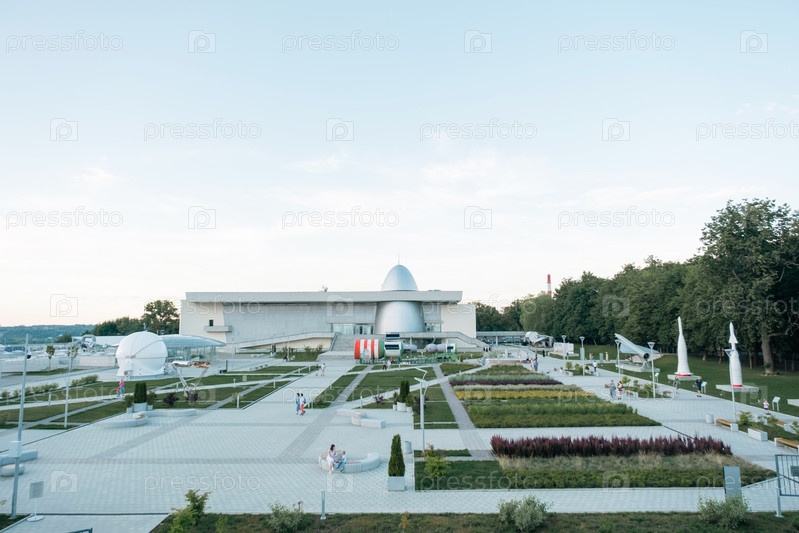 Калужский музей космонавтики - подготовка к открытию 2-й очереди. Ракета Восток, купол планетария, парк Циолковского перед зданием, реконструкция. 29 августа 2022 г., Калуга, Россия