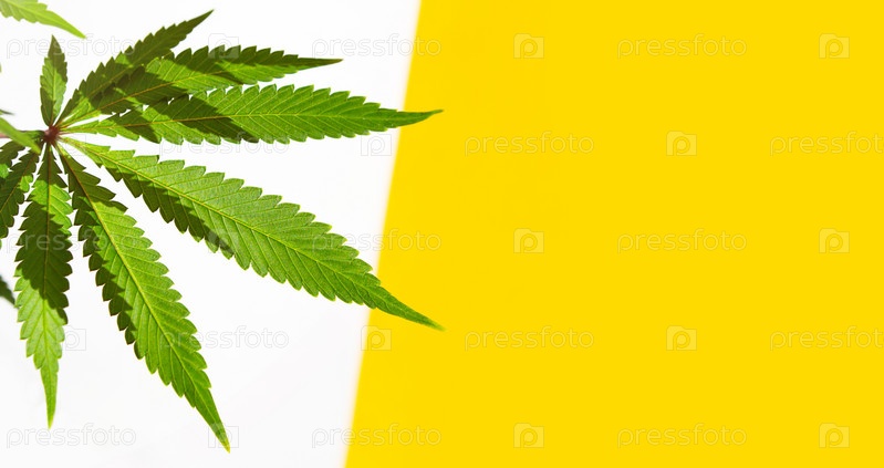 Куст конопли в ярком свете с белым и желтым фоном с тенью. Лекарственные листья марихуаны сорта Джек Херер представляют собой гибрид сативы и индики. Выращивание домашнего растения