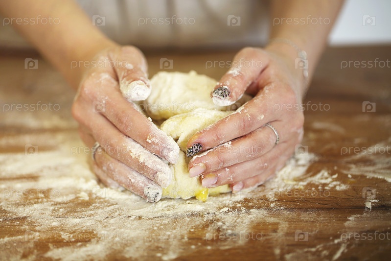 Женщина готовит тесто за столом дома