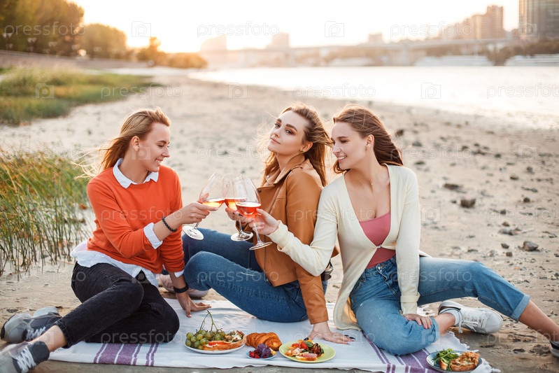 Счастливые молодые женщины отдыхают во время пикника