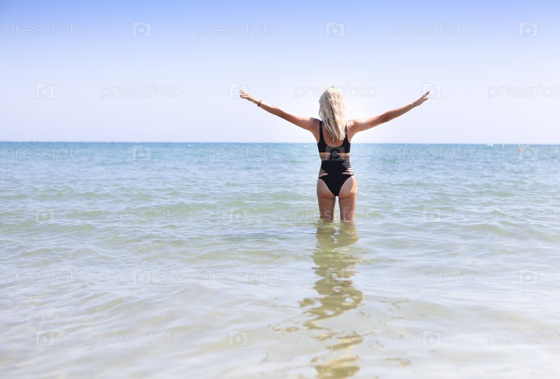 Женщина в черных купальниках на пляже