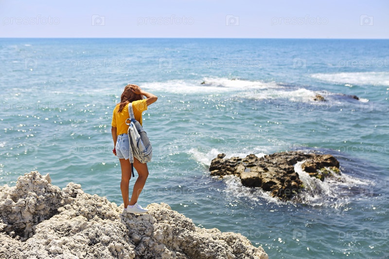 Женщина-туристка с рюкзаком в солнцезащитных очках и соломенной шляпе во время летней поездки