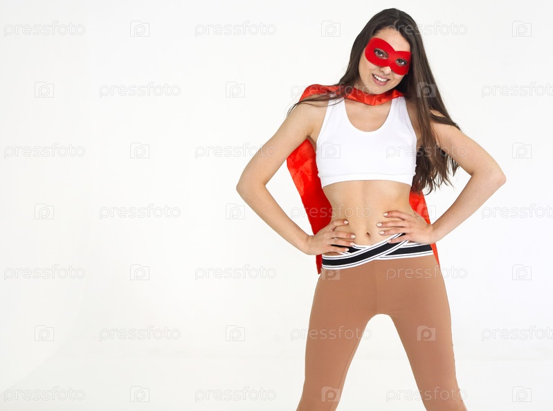 Молодая суперженщина в спортивной одежде