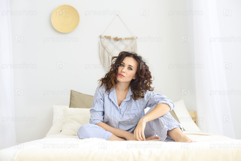 Молодая женщина в пижаме отдыхает на кровати