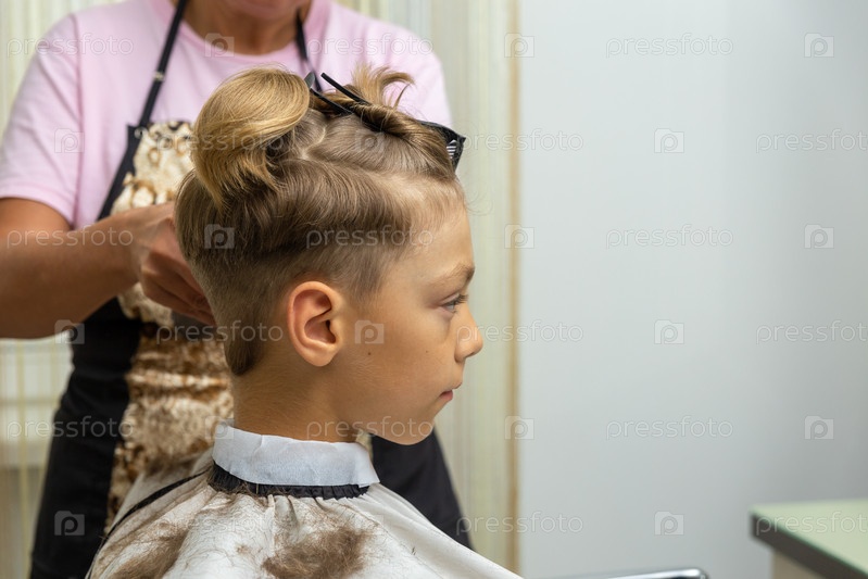 Парикмахер делает прическу для мальчика