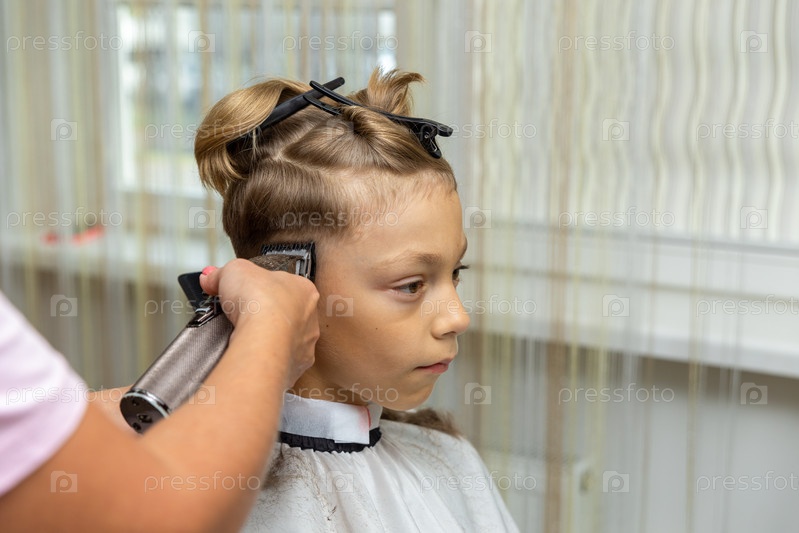 Парикмахер делает прическу для мальчика