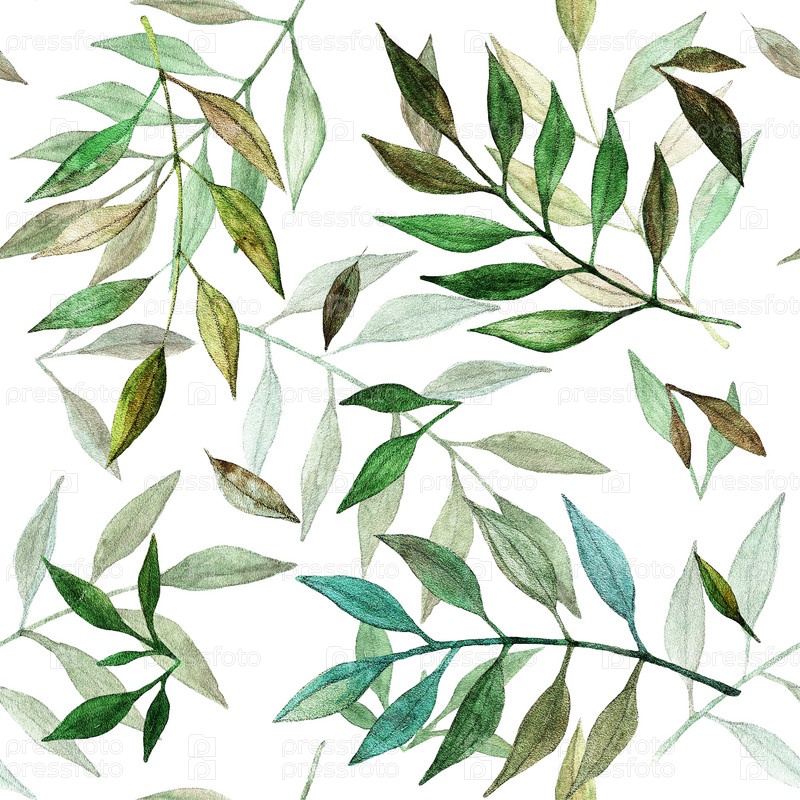 Зеленые листья, обои, акварель (2)