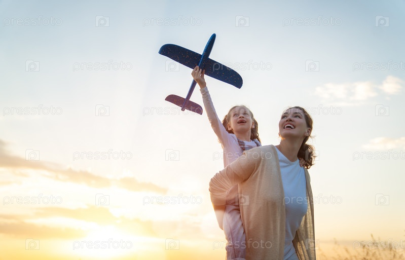Счастливая семья на закате
