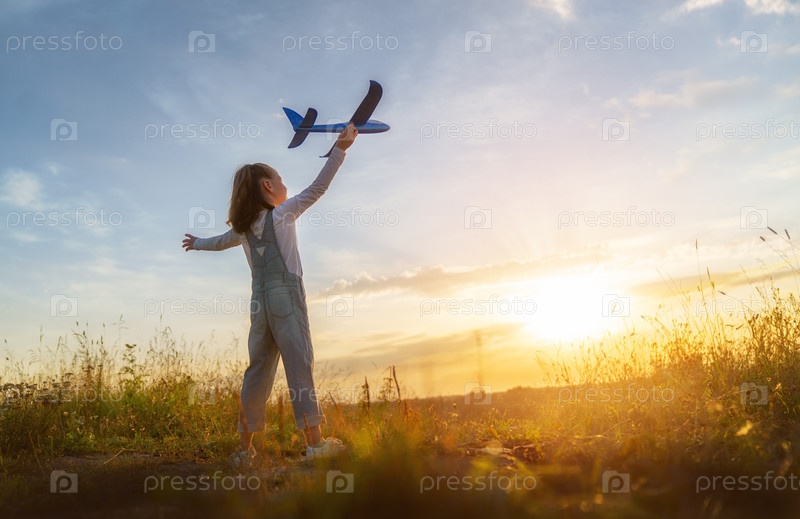Счастливый ребенок с игрушечным самолетом