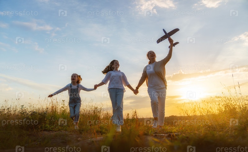 Счастливая семья на закате