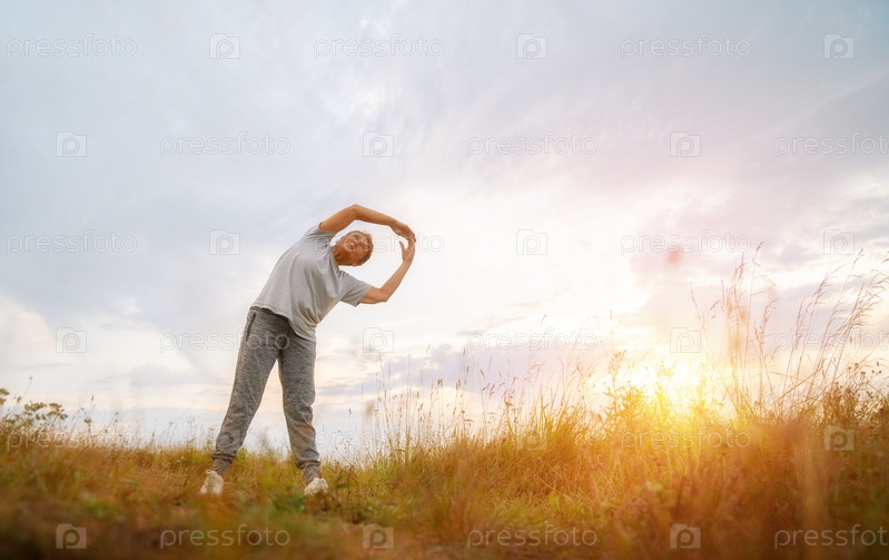 Зрелая женщина делает упражнения