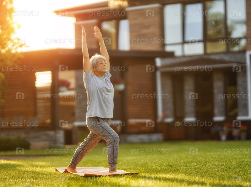 Зрелая женщина делает упражнения