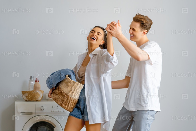 Влюбленная пара занимается стиркой