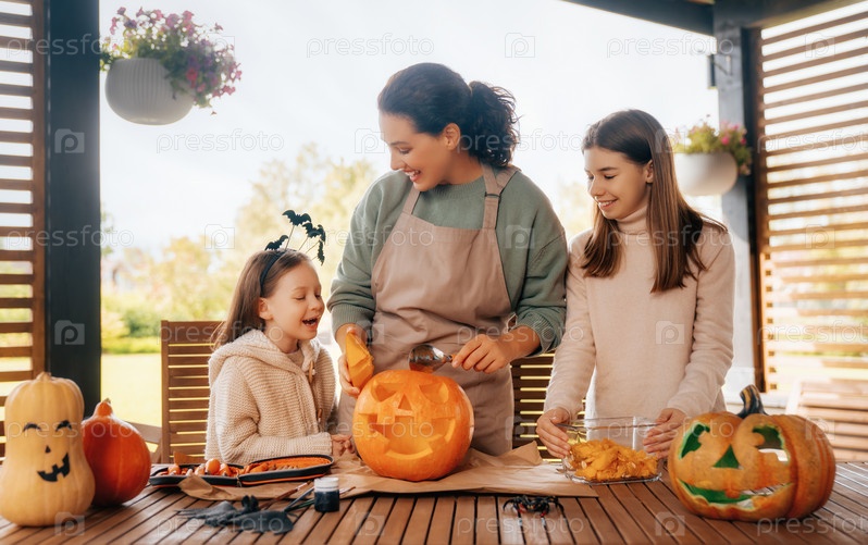 Семья готовится к Хэллоуину