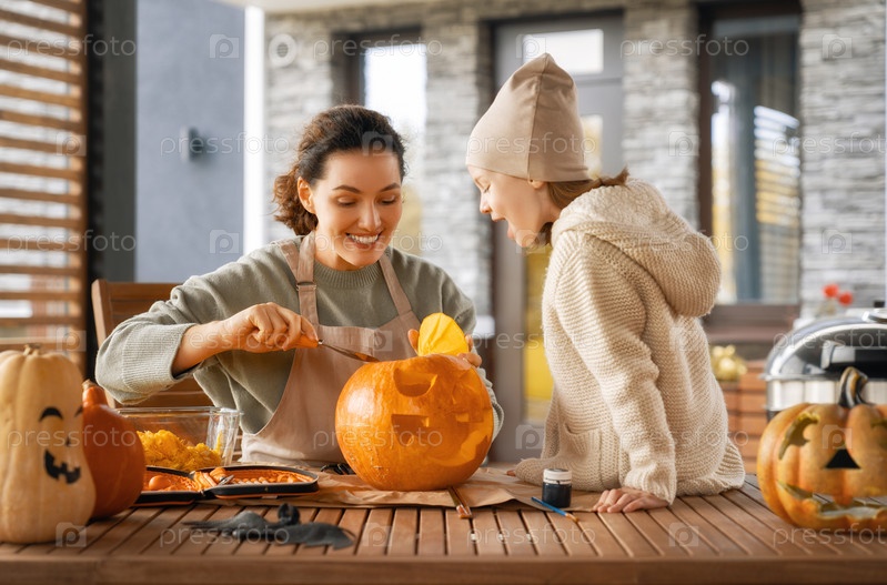 Семья готовится к Хэллоуину