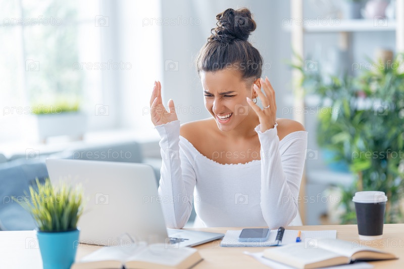 Женщина работает на ноутбуке дома