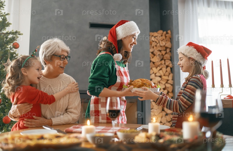 Семья празднует рождество