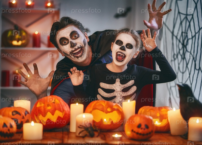 Семья празднует Хэллоуин