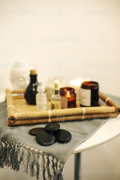 Свечи и средства по уходу за кожей на столе