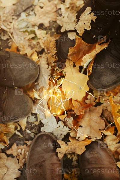 Обрезать людей, стоящих на осенних листьях