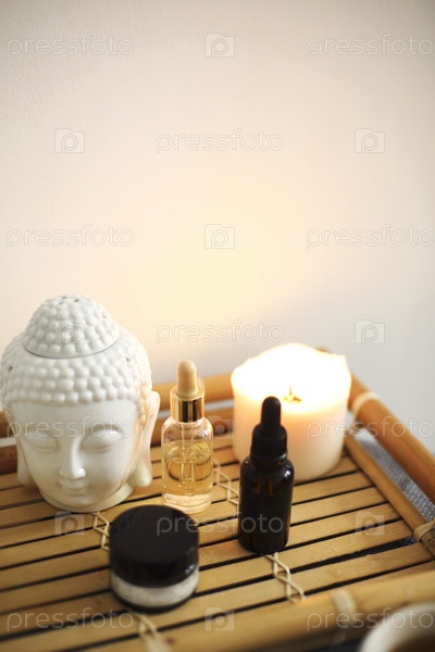 Свечи и средства по уходу за кожей на столе