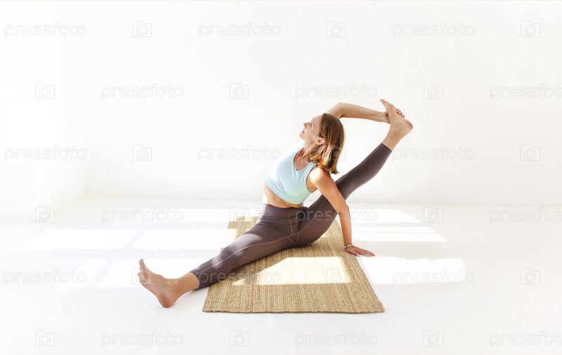 Гибкая женщина занимается йогой дома