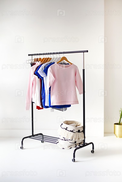 Красочная одежда висит на вешалке в комнате