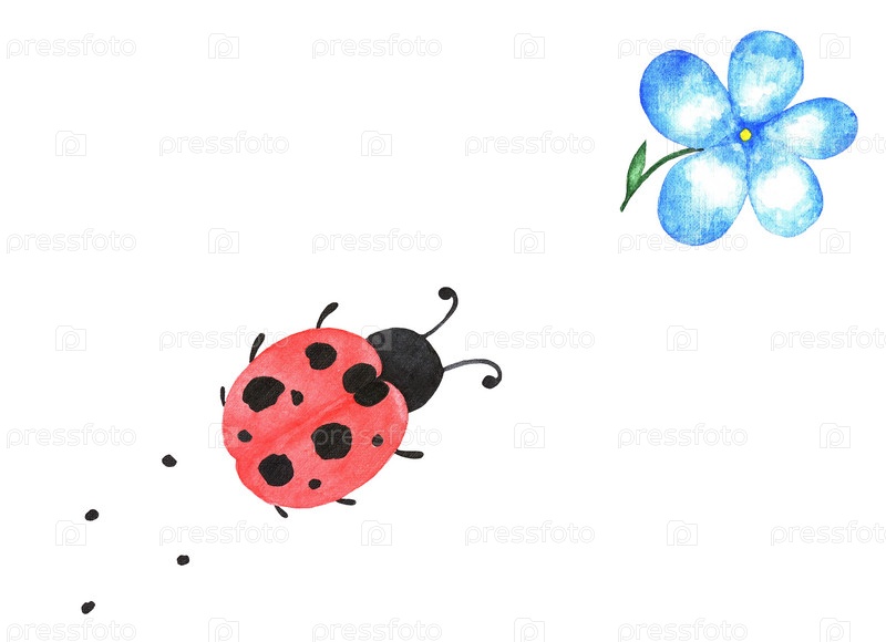 Божья коровка и цветок, акварель