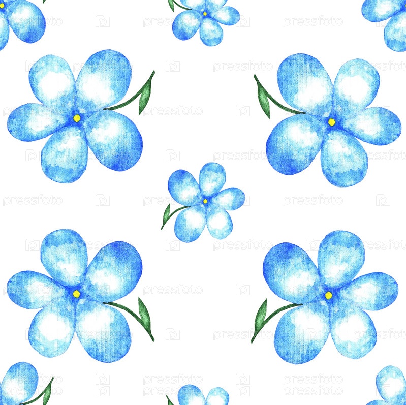 Узор с голубым цветком, акварель