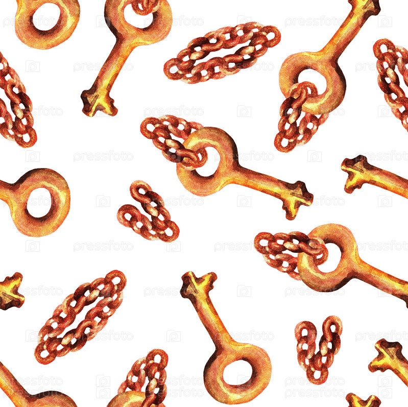Ключ на цепочке. Бесшовный узор. Акварель