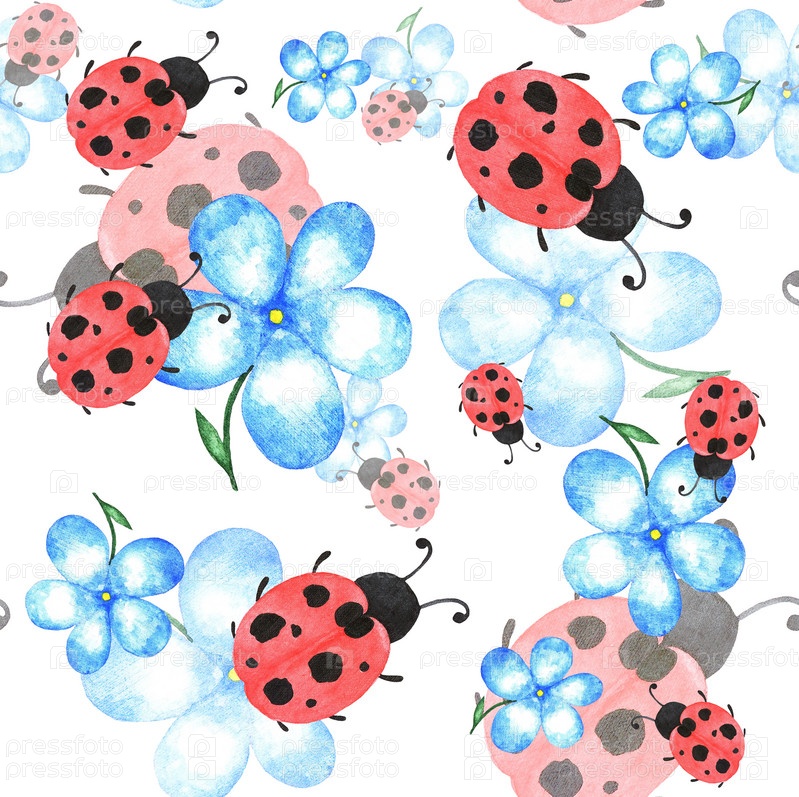 Узор с божьей коровкой и цветком, акварель (2)