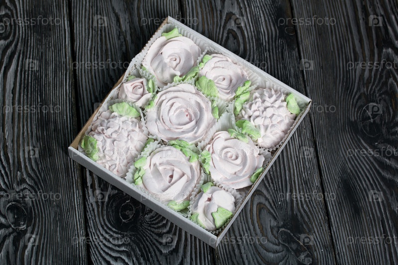 Зефир цветы. Зефир в картонной коробке. На сосновых досках