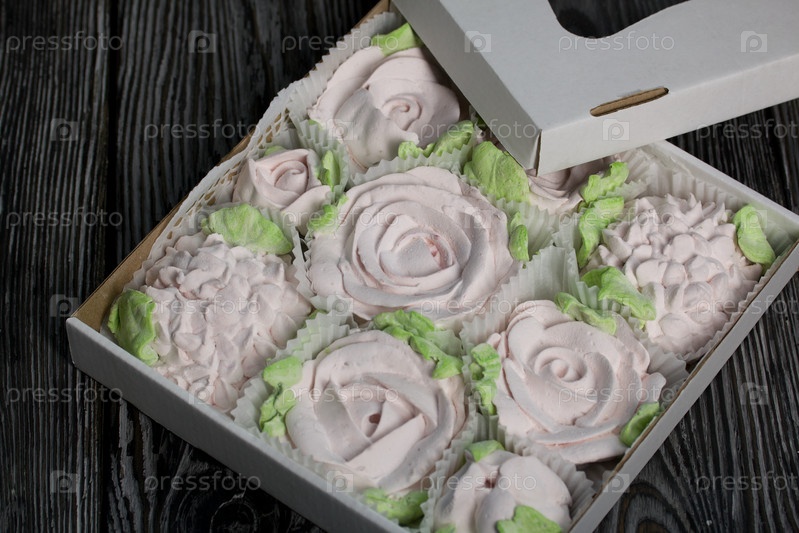 Зефир цветы. Зефир в картонной коробке. На сосновых досках