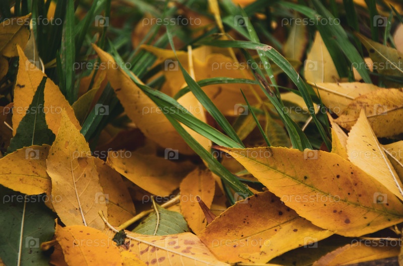 Желтые листья на траве, желтые листья на траве