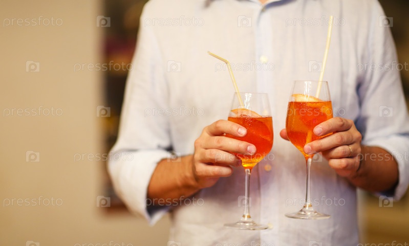 Мужчина с бокалами алкогольного коктейля