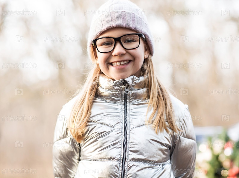 Счастливая маленькая девочка в зимнем парке