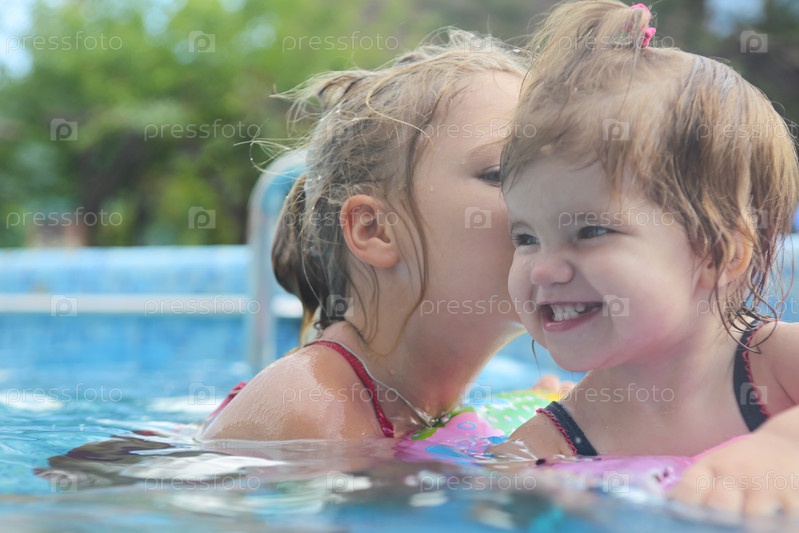 Две милые девушки играют в бассейне