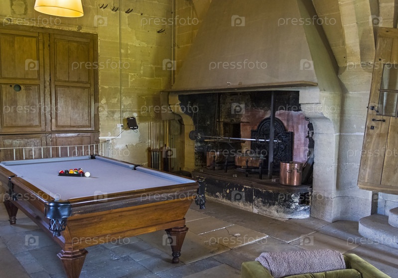 Бильярдный стол в комнате старого замка. Замок Гранд-Мелло. Франция